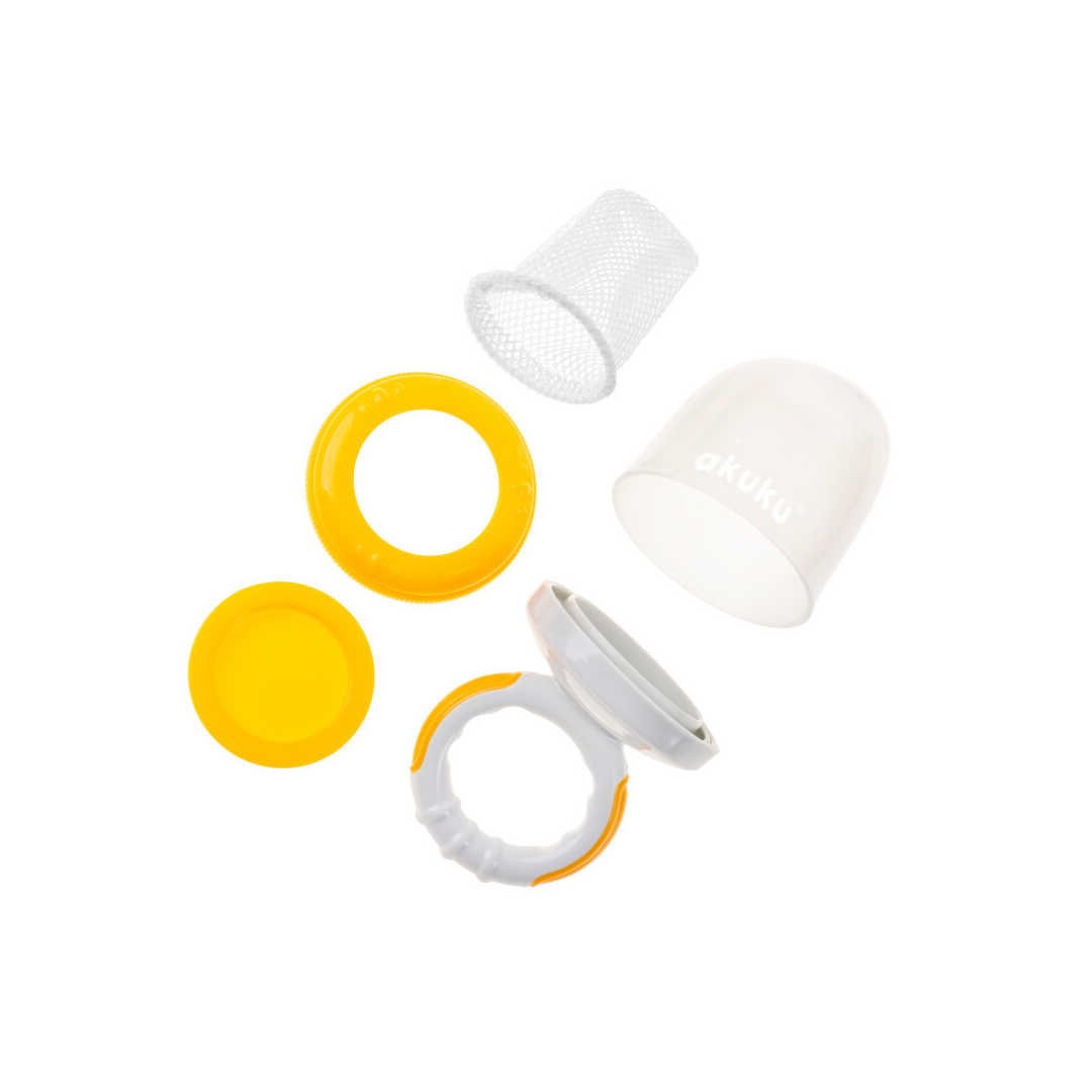 Χάρη στο Δίχτυ Δοκιμής Φρέσκου Φαγητού της Akuku το μωρό σας μπορεί να απολαμβάνει υπέροχα σνακ, χωρίς καμία ανησυχία. Με απλή σχεδίαση με δίχτυ, αυτό το εύχρηστο διχτάκι βοηθά τα μωρά να μασούν με ασφάλεια τα τρόφιμα. Τοποθετήστε απλώς κομματάκια φρούτων, λαχανικών ή ακόμη και κρέατος στη σήτα και κουμπώστε την στην πιπίλα. Το μωρό μπορεί να μασήσει, να πιπιλίσει και να γευτεί τη φρεσκάδα των τροφίμων σε μικρά, εύπεπτα κομμάτια, μειώνοντας τον κίνδυνο πνιγμού. Το Δίχτυ Δοκιμής Φρέσκου Φαγητού έχει χρωματιστή, εργονομική λαβή για το μωρό σας, ώστε να μάθει να τρώει μόνο του. Με καπάκι για ασφάλεια και υγιεινή. Περιέχει ανταλλακτικό δίχτυ. Απλή και εύκολη χρήση