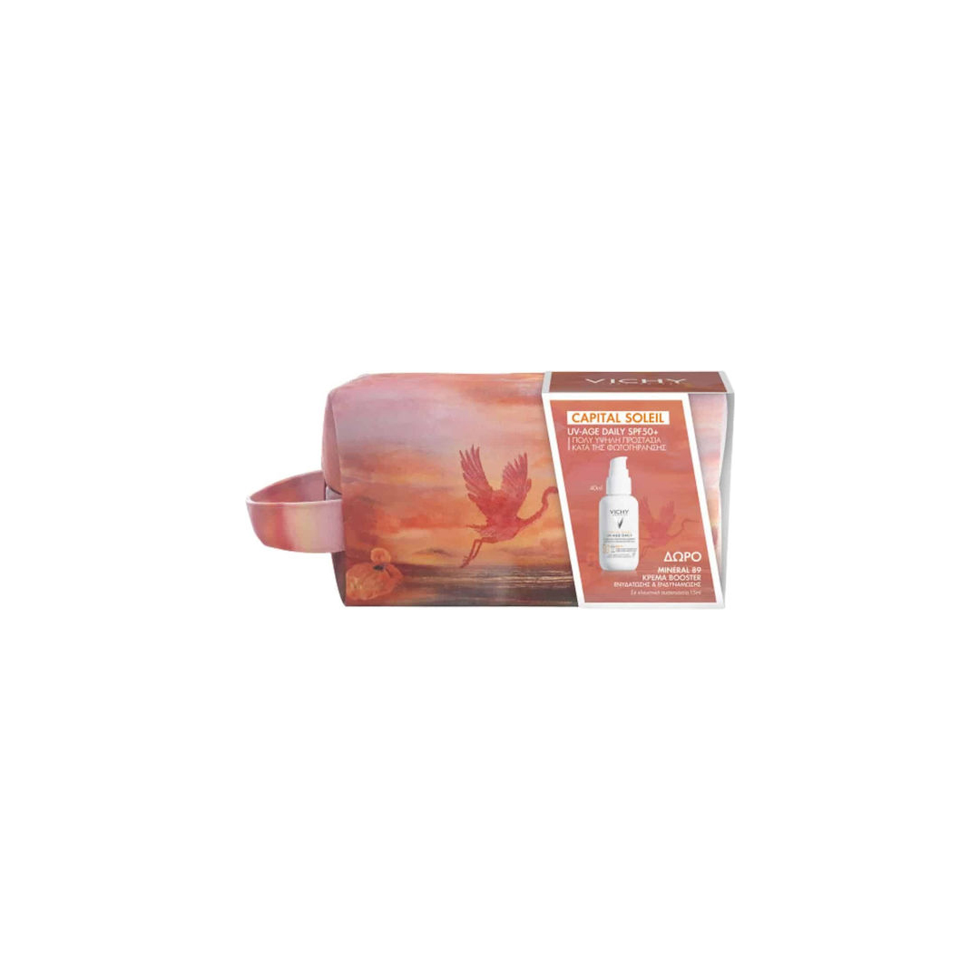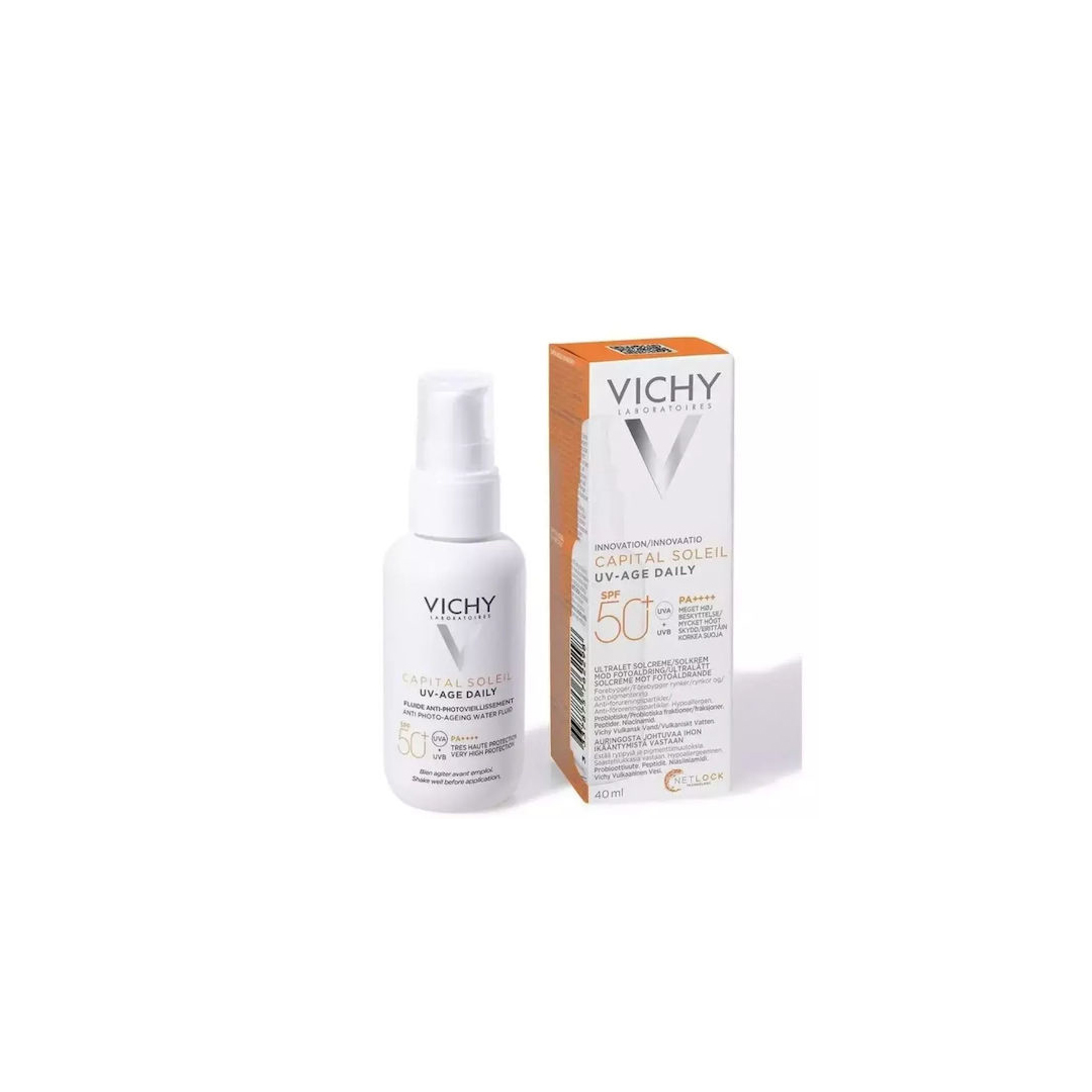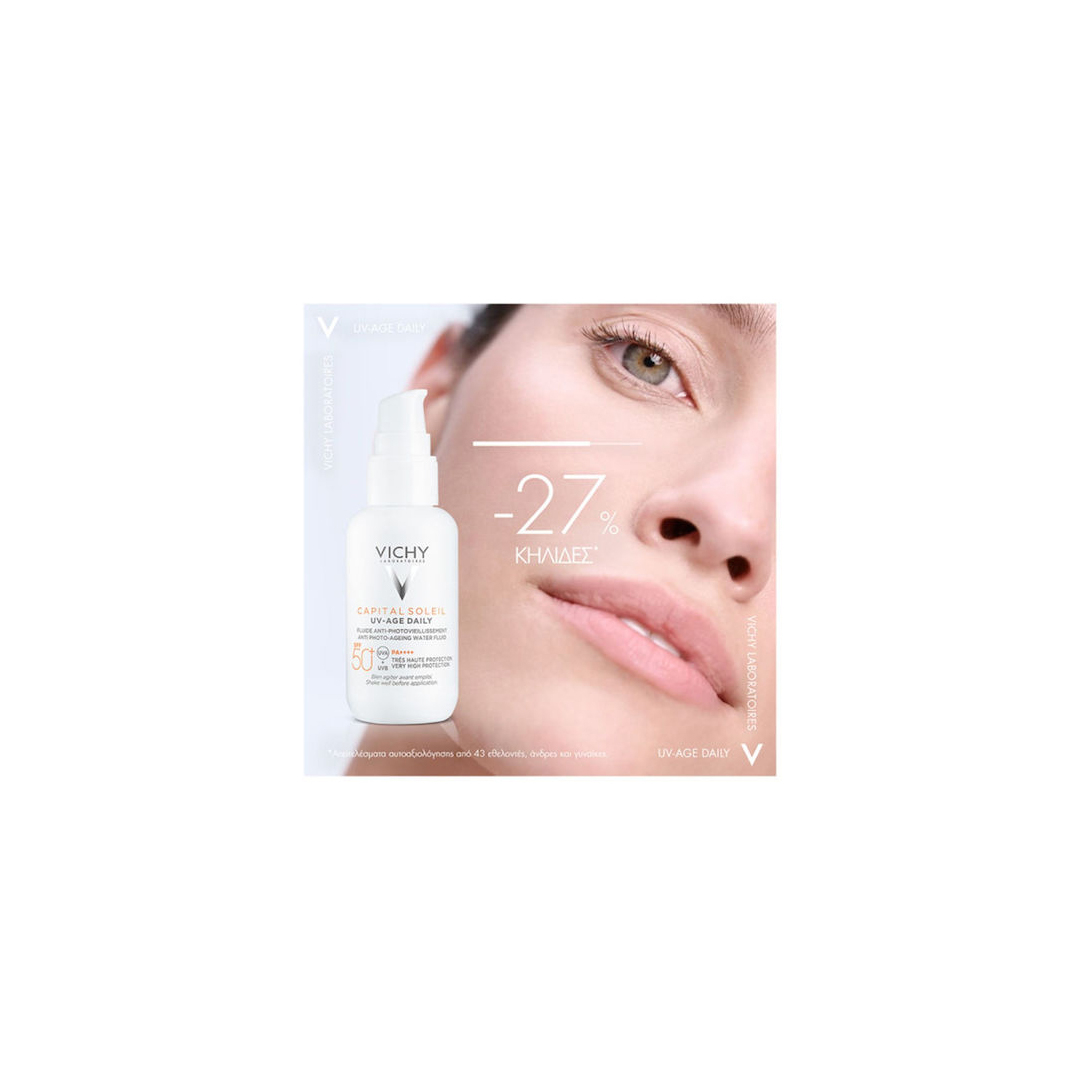 - Το UV Age Daily SPF50+ είναι ένα εξαιρετικά λεπτόρρευστο αντηλιακό, πολύ υψηλής προστασίας, που προλαμβάνει και διορθώνει τα σημάδια της φωτογήρανσης . Η τεχνολογία Netlock, κατοχυρωμένη με πολλαπλά διπλώματα ευρεσιτεχνίας, σχηματίζει ένα εξαιρετικά λεπτόρρευστο και ανθεκτικό φιλμ πολύ υψηλής UV προστασίας με αόρατο τελείωμα, για προηγμένη αντηλιακή προστασία ενάντια στις ακτινοβολίες UVB και UVA, οι οποίες ευθύνονται για πάνω από το 80% των σημαδιών γήρανσης.