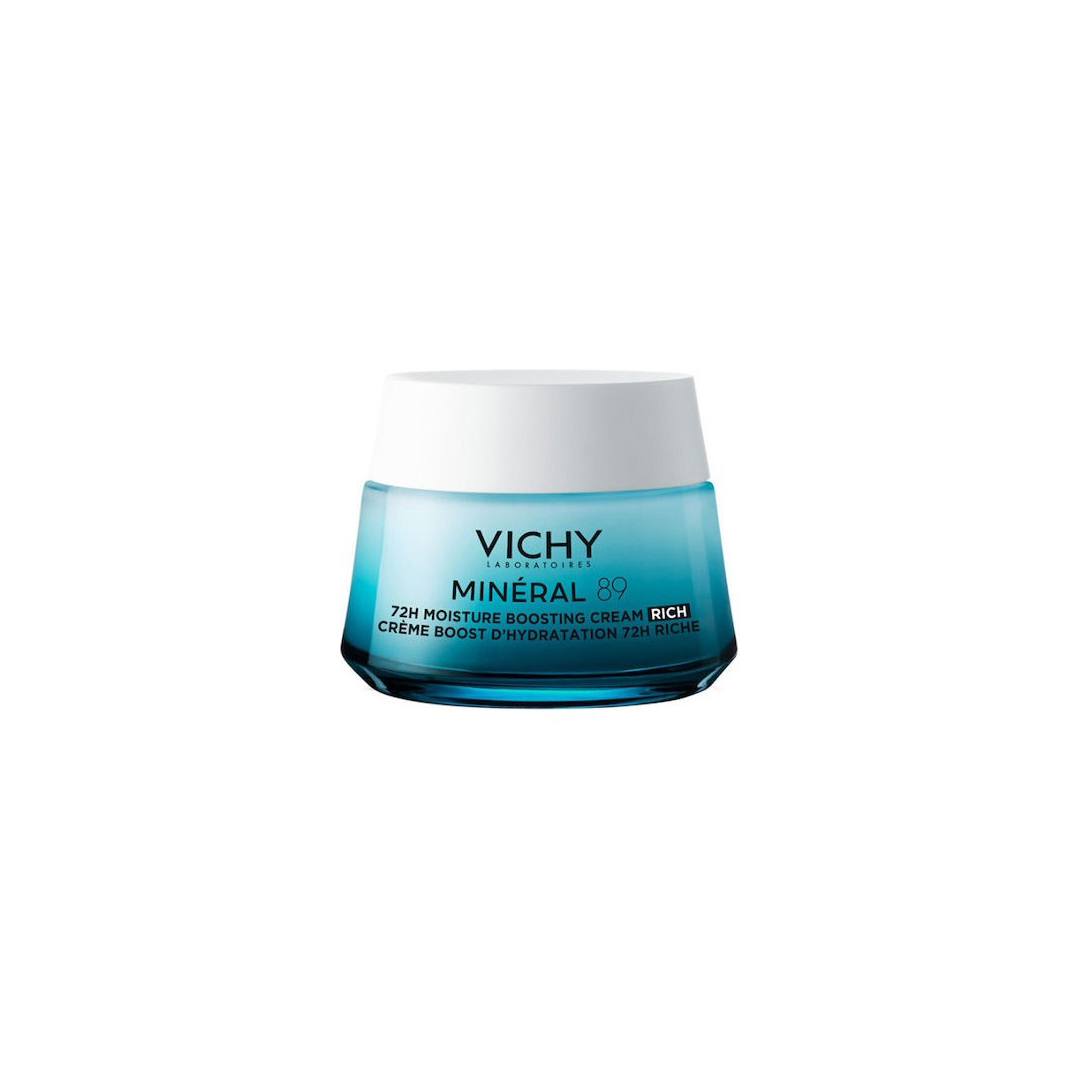 - Λόγω της έκθεσης στους επιθετικούς παράγοντες της καθημερινότητας, ο φυσικός φραγμός υγρασίας της επιδερμίδας εξασθενεί. Αυτό έχει ως συνέπεια η επιδερμίδα να χάνει ζωτικά στοιχεία: νερό, μεταλλικά στοιχεία, λιπίδια, βιταμίνες, και υαλουρονικό οξύ. Η Vichy έχει τη λύση, και είναι η MINERAL 89 Κρέμα Booster Ενυδάτωσης 72Η με πλούσια υφή.